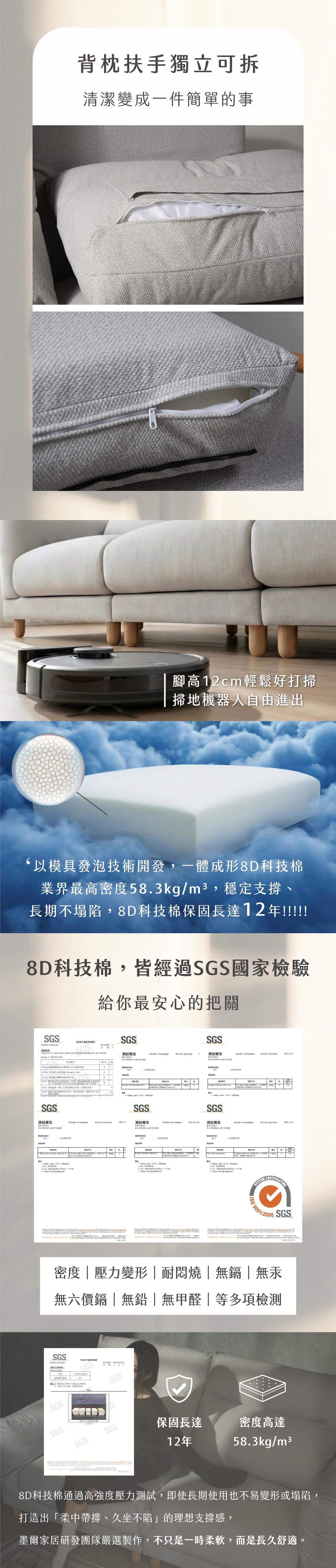 • 材質:✦獨家專利墨爾8D科技棉 密度達58.3kg/M³✦、立體織紋貓抓布、S彈簧與平衡定位線打底、白蠟木外扶手、白鐵拉毛絲面