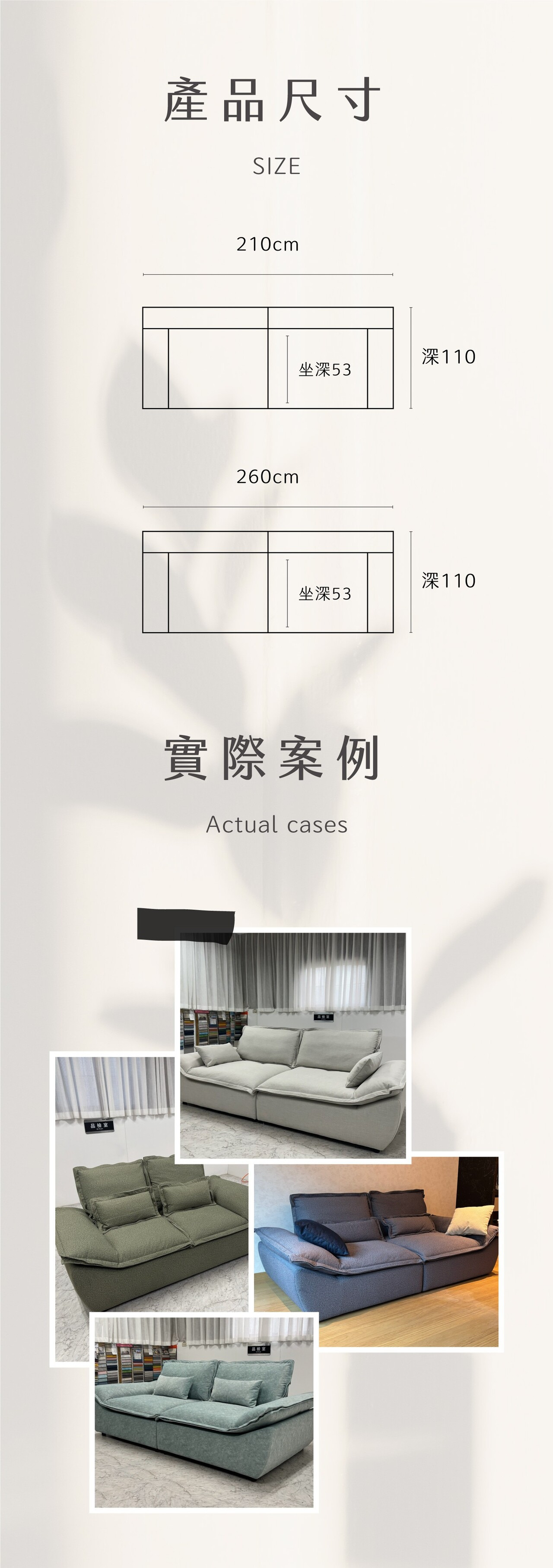• 尺寸:寬280cm 深110cm 高83cm 坐高45cm 展前坐深53cm 展後76cm