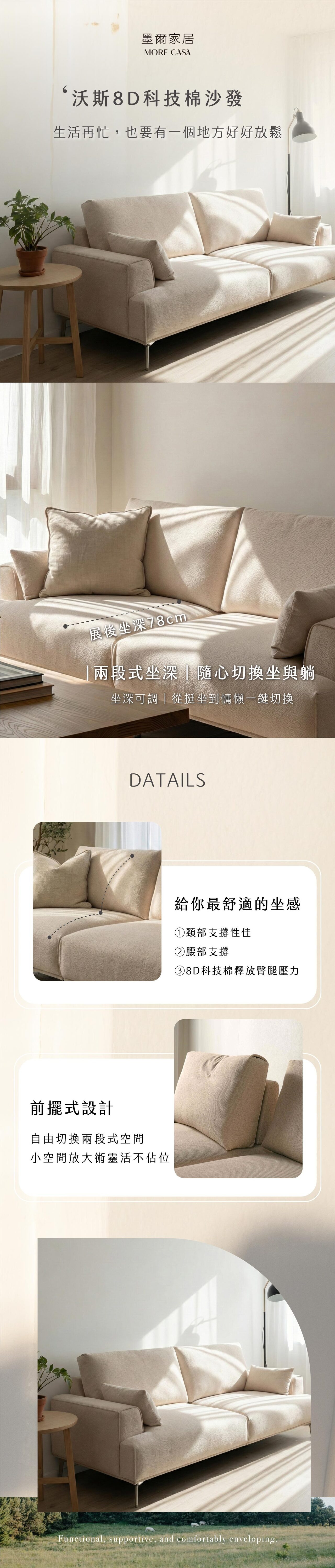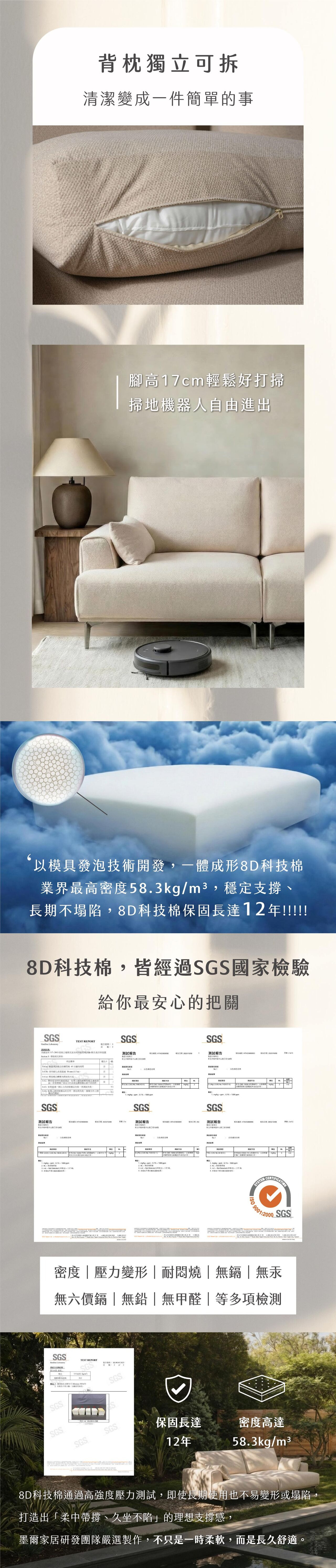 • 材質:✦獨家專利墨爾8D科技棉 密度達58.3kg/M³✦、立體織紋貓抓布、S彈簧與平衡定位線打底